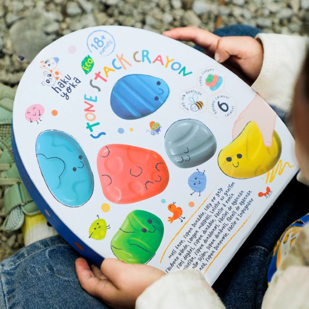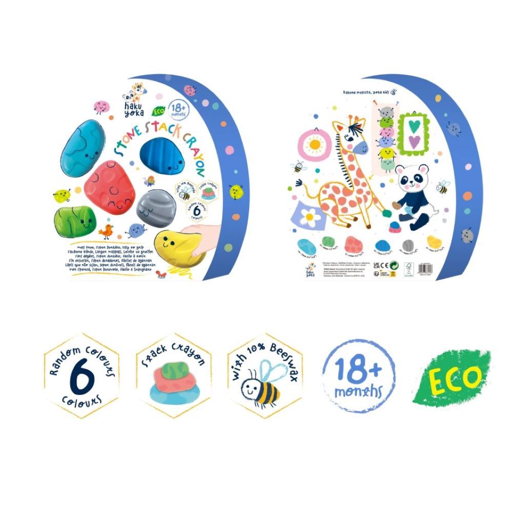 Her har du de sødeste farvelader til de helt små. Farverne er ekstra store så de er lette at holde om for små fingre. Sættet her indeholder seks fine farver, der alle er formet som sten, og som udover at kunne bruges til farvelægning, også kan fungere som fingerdukker. Vær opmærksom på, at begynderfarverne her ikke farver lige så kraftigt som de andre farver fra Haku Yoka, men det betyder også, at der er mindre farvesnuller rundt om tegnepapiret.