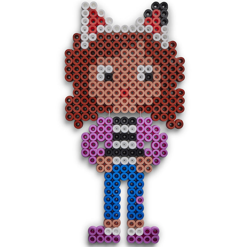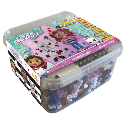 De fleste børn kender serien om Gabby"s Dukkehus. Serien handler om den den entusiastiske katteelsker Gabby og hendes ven Pandy Pote, der drager ud på en række eventyr. Denne bøtte indeholder ca. 900 stk. maxi perler i ass.farver, 1 stor firkantet stiftplade transparent nr. 8214, 1stk. elastiksnor, et motiv ark med farver samt instruktioner og strygepapir.