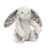 Her er barnets "nye bedste ven". Super blød kaninbamse fra Jellycat fra serien Bashful, der her fås med blomstret stof i øre og på poter. Kaninen er super blød og måler 18 cm. En skøn bamse til når børn skal puttes eller trøstes.
