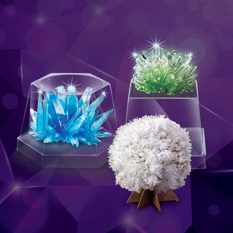 Leg og lær med KidzLabs. Udfør kemiske eksperimenter og dyrk din egen selvlysende Månekrystalklynge, Aquamarine krystal og krystal-snetræ. Lær om, hvordan krystaller dannes af kemiske stoffer! Lav en flot udstilling på børneværelset og vis dem til venner og familie. i Med sættet følger masser af udstyr og dansksproget vedledning.