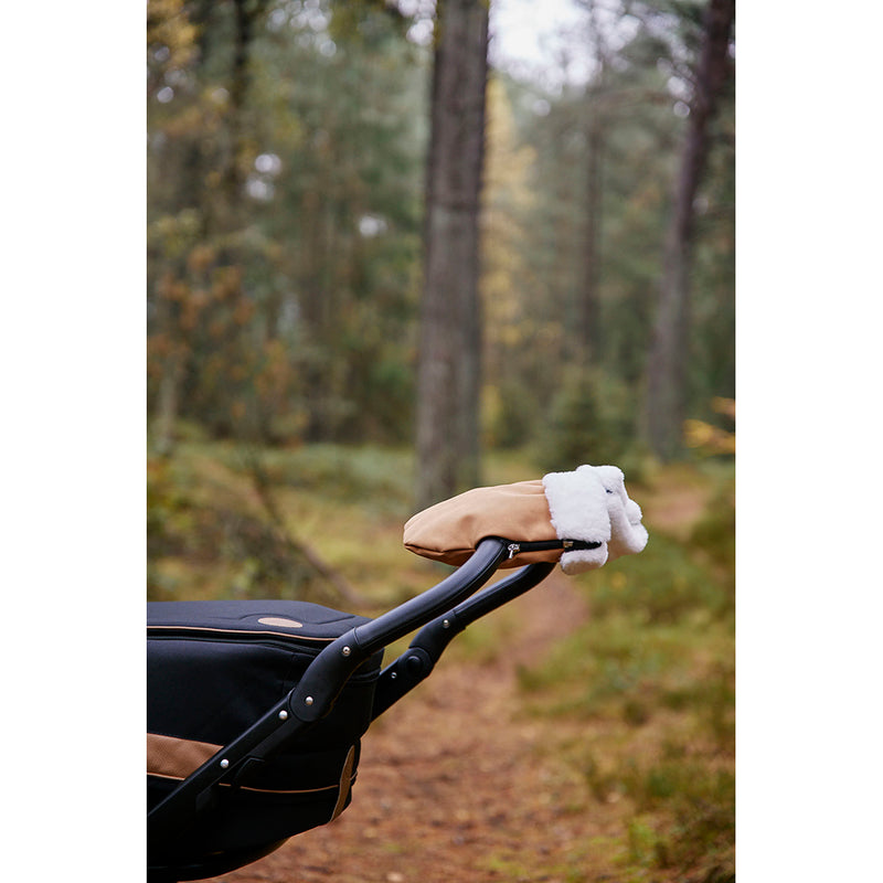 Barnevognshandske i imiteret ruskind. Østerbro handsker fra KongWalther er en barnevognshandske til dig som er træt af kolde hænder på barnevogns styret - og som har en baby, der taber sutten tusindevis af gange på samtlige ture med barnevognen. Med Østerbro handsken har du altid hænderne fri, og kan hurtigt få dem ind i varmen igen når sutten er stukket i munden eller kaffen drukket.