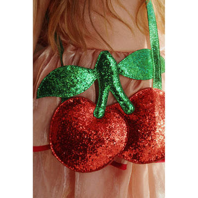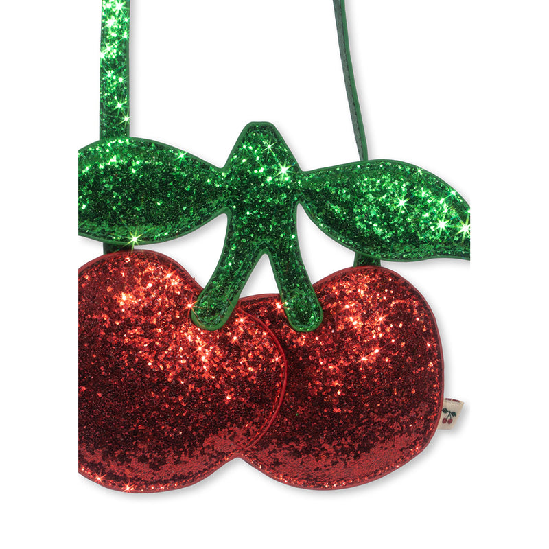 Yndig kirsebærformet pung/taske med lang skulderstrop fra Konges Sløjd. Tasken har et rum og lukkes med lynlås. Fra 3 år.