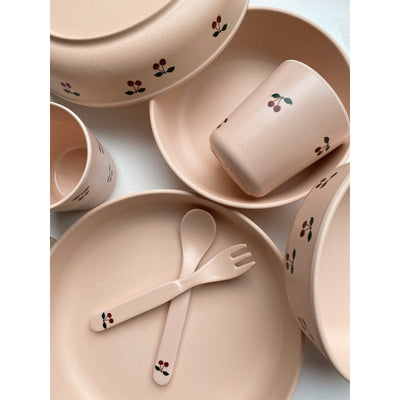 Fint spisesæt fra Konges Sløjd fremstillet i PLA/bioplast som er nedbrydelig. Sættet består af tallerken, skål, kop, ske og gaffel, med sød illustration fra Konges Sløjds fantastisk univers. Flot gaveide der leveres i gaveæske.