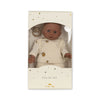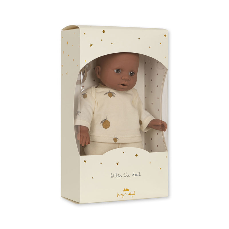 Sød babyukke fra Konges Sløjd, med hoved, hænder og fødder i vinyl. En sød dukke der er iklædt dukketøj med lemon motiver og som har en medfølgende sut, som kan tages ind og ud af mundet. En fin dukke velegnet til børn fra 3 år.