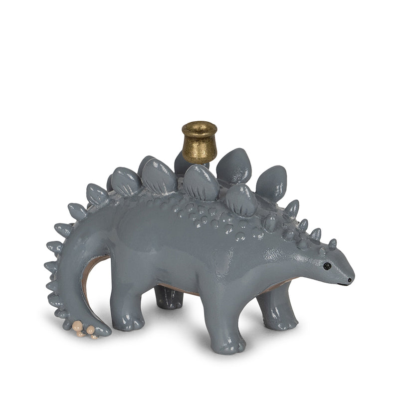 Lille lysestage udformet som en dinosaur, med holder der passer til små fødselsdagslys. Figuren Måler 4 x 7.8 x 3 cm. Leveres uden lys.