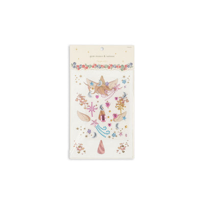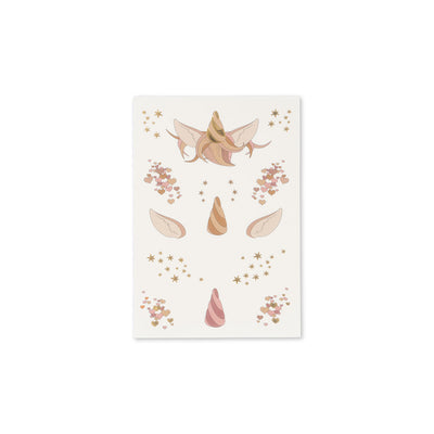 Fine tatoveringer til børn fra Konges Sløjd. Påføres med vand eller en våd svamp i mindre end 30 sekunder. Meget nemme at fjerne, brug blot vand og sæbe. Er testet for skadelige stoffer. Alle ingredienser er godkendt til kontakt med huden. Fra 3 år.