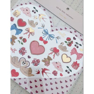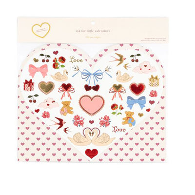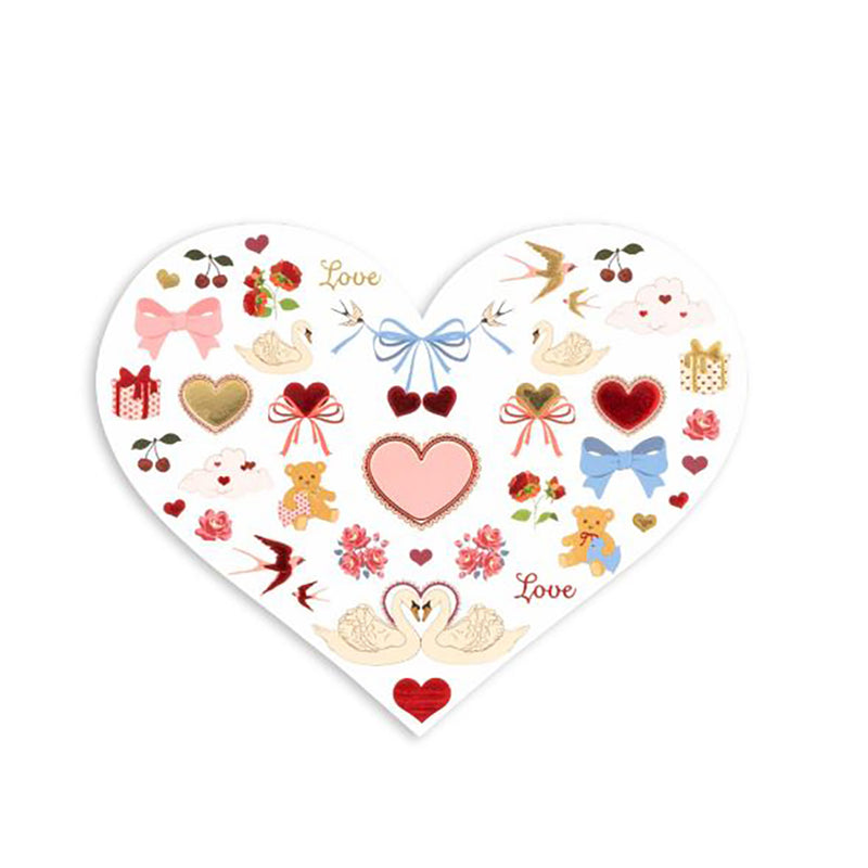 Fine tatoveringer til børn fra Konges Sløjd med romantiske motiver med masser af hjerter og kærlighed. Påføres med vand eller en våd svamp i mindre end 30 sekunder. Meget nemme at fjerne, brug blot vand og sæbe. Er testet for skadelige stoffer. Alle ingredienser er godkendt til kontakt med huden. Fra 3 år.