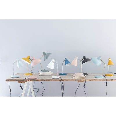 Stilfuld bordlampe i metal fra Leitmotiv, der med sit brede lampehoved og rene linjer har et klassisk retro look. Lampen kan anvendes overalt i boligen, og har fleksibel led, så lampehovedet kan drejes og give den helt rette belysning. På selve ledningen er der afbryderknap. Måler H: 37.5 cm og skærm 19 cm i diameter. Pære: E14 - Max. 40W sparepære.