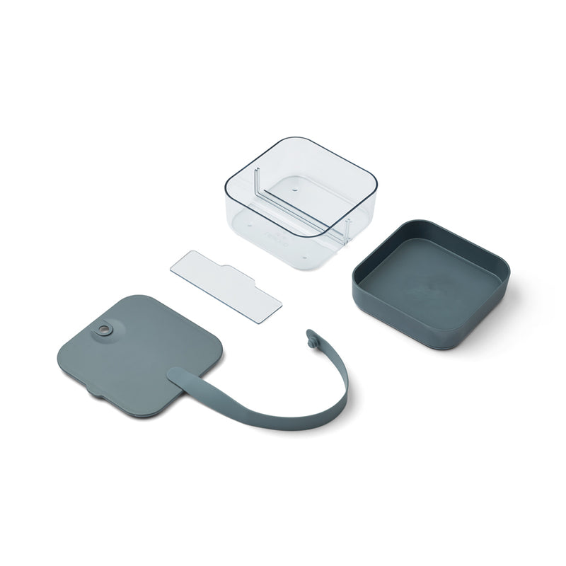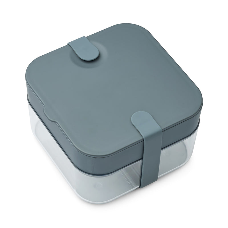Praktisk madkasse med flere rum og aftalelig bakke fra Liewood, der gør det muligt at holde snack, frugt, kiks og grøntsager adskilt fra fx rugbrødsmadder. Låget er fremstillet af 100% silikone med lang strop som lukkes omkring hele madkassen. Måler 15 x 15 x 9.5 cm.