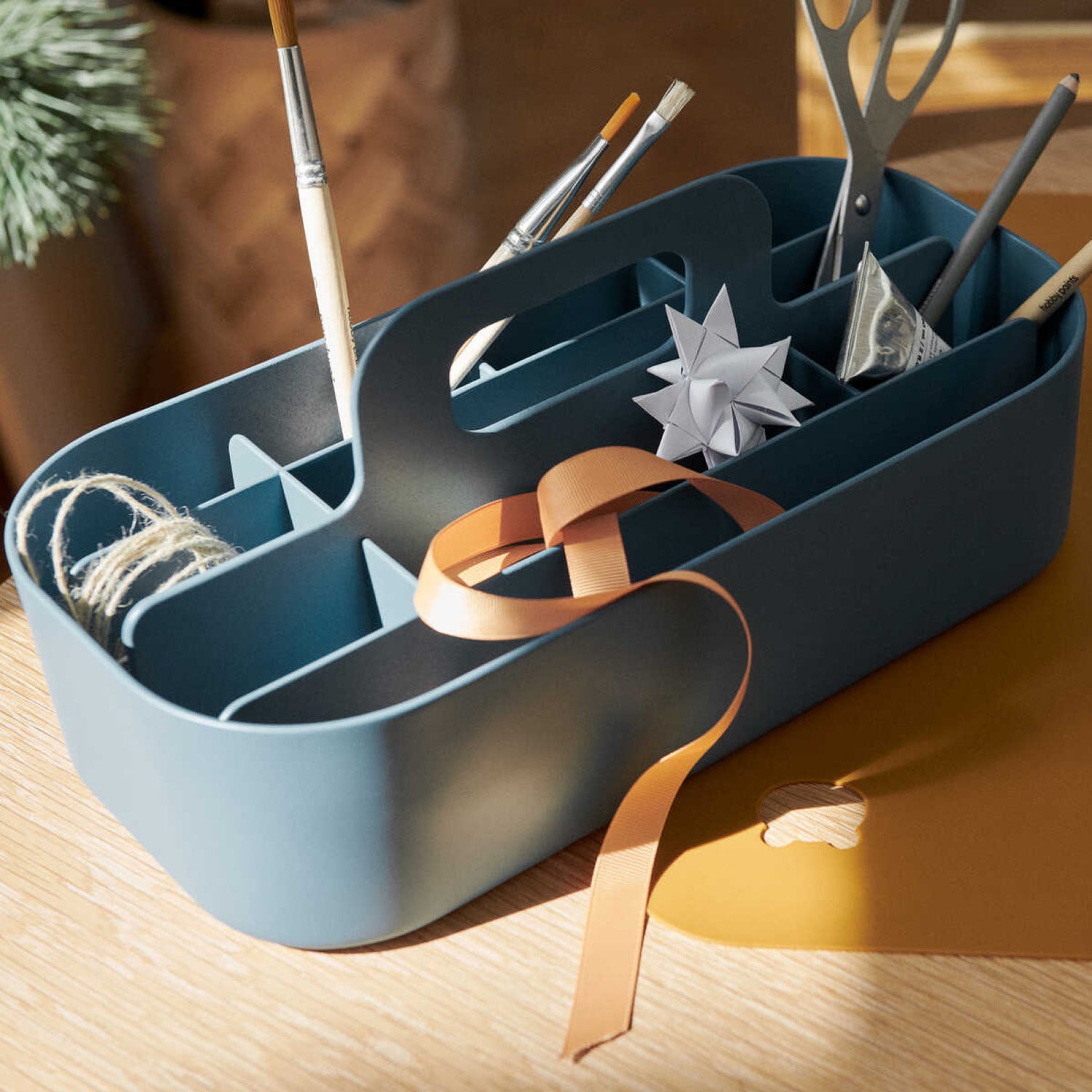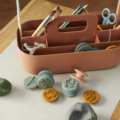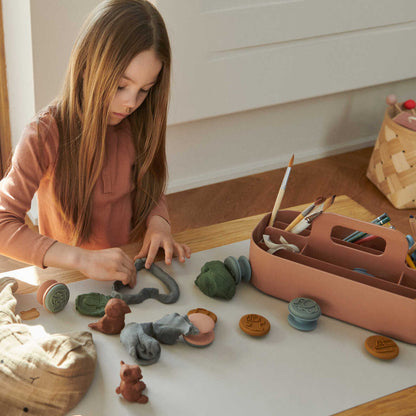 Opbevaring fra Liewood i en smuk lys grå farve. Perfekt til opbevaring af tuscher, ting til håndarbejde, smånips, Lego figurer og meget andet. Med 14 rummelige rum og en praktisk hank der gør den let at transportere fra værelset til spisebordet, gulvet eller andre steder der skal leges og være kreativ. H: 14.5 B: 17 cm L: 33 cm.