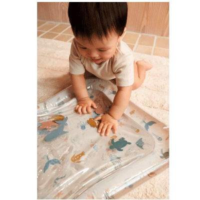 Sjov oppustelig vand aktivitetsmåtte fra Liewood, der kan give baby en sanselig oplevelse og styrke motorisk udvikling. Er fremstillet af slidstærkt PVC med oppustelig kant, og  mellemkammeret har skumformer og kan fyldes med vand ved at bruge ventilen på bagsiden. Fra 3 mdr.
