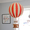 Flot og dekorativ luftballon i rød til pynt på børneværelset. Denne luftballon måler 32 cm i diameter, og fås i striber af rød og creme, med lille kurv nederst. Er perfekt til ophæng i loft eller vindue. Er designet efter original model med mange små og fine detaljer.