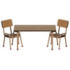 Sæt med bord og stole, der passer til Mouse hole Farmhouse. Sættet er lavet af bøgetræ med metalben. Bemærk de håndlavede farvedetaljer nederst på bord- og stolebenene. Sættet kommer med to stole.