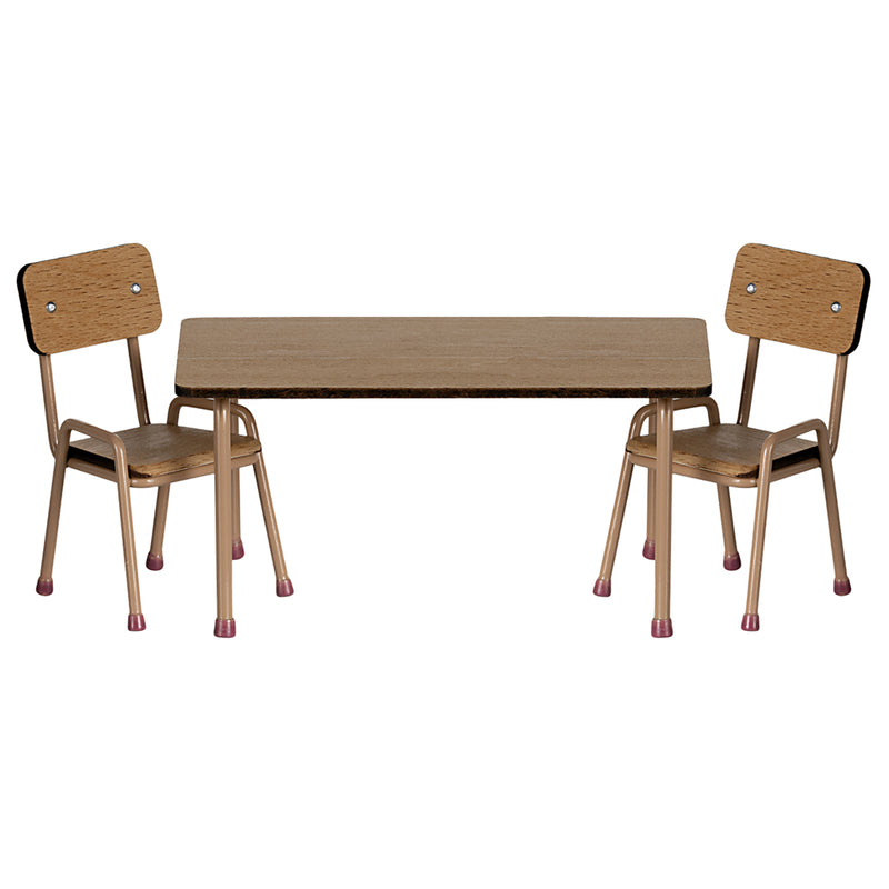 Maileg dukketilbehør til mus, Bord og stol - Mørk pudder
