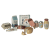 Alt mad som din Maileg ven behøver. Dette sæt inkluderer mayonnaise, mælk, honningkrukker, pølser, 4 ispinde, æggebakker, 2 sodavand og ost. Der kan forekomme små variationer i malingen. Fra 3 år.