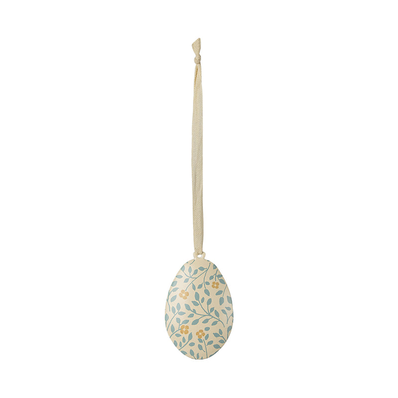 Metal påskeæg som ornament med blomsterprint. Er smuk på grene, som del af dekoration på påskebordet. Mix de forskellige farver med andre Maileg påskeornamenter for at fuldende din dekoration. Måler 6 x 4 cm.