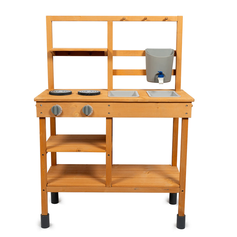 Fremstillet af træ af høj kvalitet, er dette mudderkøkken bygget til at holde og modstå vejret, hvilket gør det til den perfekte tilføjelse til dit barns baghave eller legeplads. Et fantastisk sted for børn at udfolde sig, skabe, samarbejde – og ikke mindst have det sjovt med udeleg!