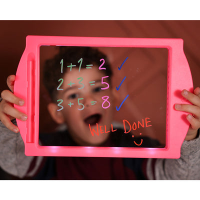 Skab fantastiske lysende billeder, der forandres og skifter farve! 36 indbyggede lyseffekter vækker kunsten til live! Tegn ved hjælp af den gennemsigtige tegneskærm med pink ramme! Indeholder 4 forskellige farvede fluorescerende penne og indbygget stativ til at udstille mesterværket. Emballage: 4 x 32 x 21 cm. Alder: 4-8 år.