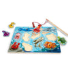 Sjovt fiskespil med magnetiske brikker og fiskestang fra Melissa & Doug. Først kan barnet udfordres på at "fange" de magnetiske brikker, og dernæst kan bare øve sig i at finde den rigtige plads, hvor brikken med et havdyr passer til. Et farverigt puslespil m. 10 brikker som fremmer øje-hånd koordination.