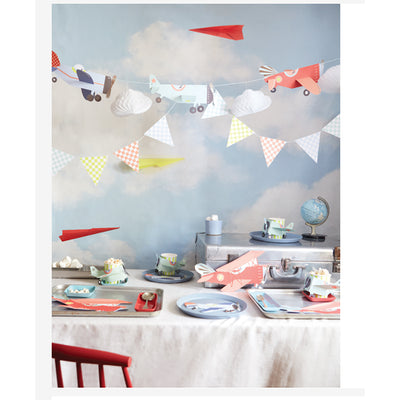 Flotte servietter med flymotiv, der vil pynte flot på bordet til børnefødselsdage. Fås her i pakke med 16 stk. der måler 19.7 x 10.8 cm.