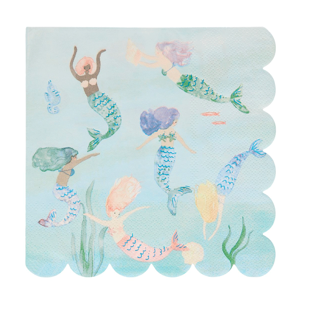 Meri Meri servietter str. L, Havfruer - 16 stk.