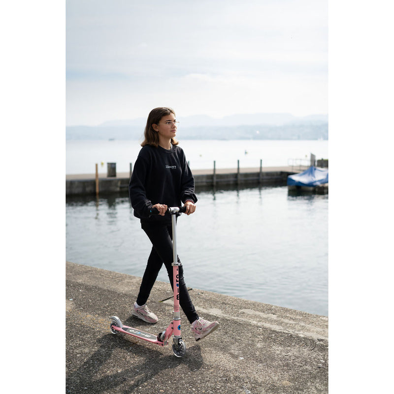 Dette alsidige aluminiumsløbehjul har været en populær følgesvend i årevis, bland børn og teenagere. Ikke meget ekstraudstyr, men altid den velkendte Micro-kvalitet – det er Micro Sprite LED-scooteren i en moderne udgave.