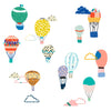 Skønne dekorative wall stickers fra Mimi'lou i form at 11 små forskellige luftballoner i fine farver og mønstre, samt 7 små skyer. Luftballonerne måler mellem 4,5-7,5 cm i højden. Luftballoner og skyer er lige til at klistre op, på alle former for glatte overflader som vægge, spejle, møbler m.m.