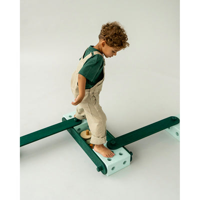 Modu Balance track, balancebane i træ og m skum klodser, aktivitetslegetøj - Ocean Mint / Forest Green