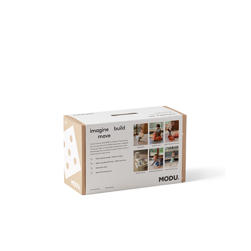 Indholdet af dette Curiosity byggesæt udvikler dit barns evne til at balancere, gynge, hoppe og køre m.m. Byg kreationer, der tilpasser sig dit barns motoriske færdigheder. Curiosity-sættet er et rigtig godt startsæt til at komme i gang med MODU-legen. "Med Curiosity-sættet har man mulighed for at bygge mere end 10 kreationer".