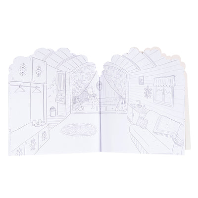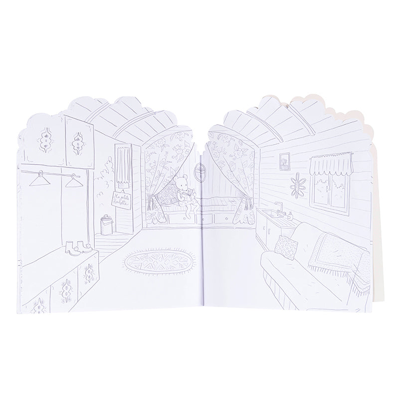 Rigtig fin male- og klistermærkebog fra Moulin Roty, med 20 siders interiør fra træhuse til at male, og 160 klistermærker til påsætning. Måler 24 x 28 cm. Alder fra 3 år.
