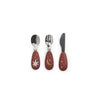 Bestiksæt med illustrationer fra serien Après la pluie, bestående af gaffel, ske og kniv.