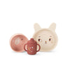 Silikone spisesæt med illustrationer fra serien Après la pluie, bestående af en tallerken, en skål samt en tudkop med 2 håndtag. Tåler mikroovn. Tåler opvaskemaskine. Indhold: 1 x tallerken 21 cm, 1 x kop, 1 x skål.