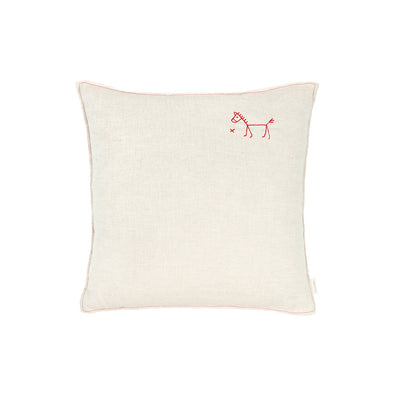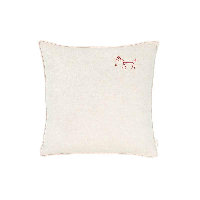 Sød pude til børneværelset med broderet motiv fra Nobodinoz. Hørpuden er fremstillet med betræk af 100% vasket fransk hør, og er med fyld af økotex polyester. Måler 45 x 45 cm.
