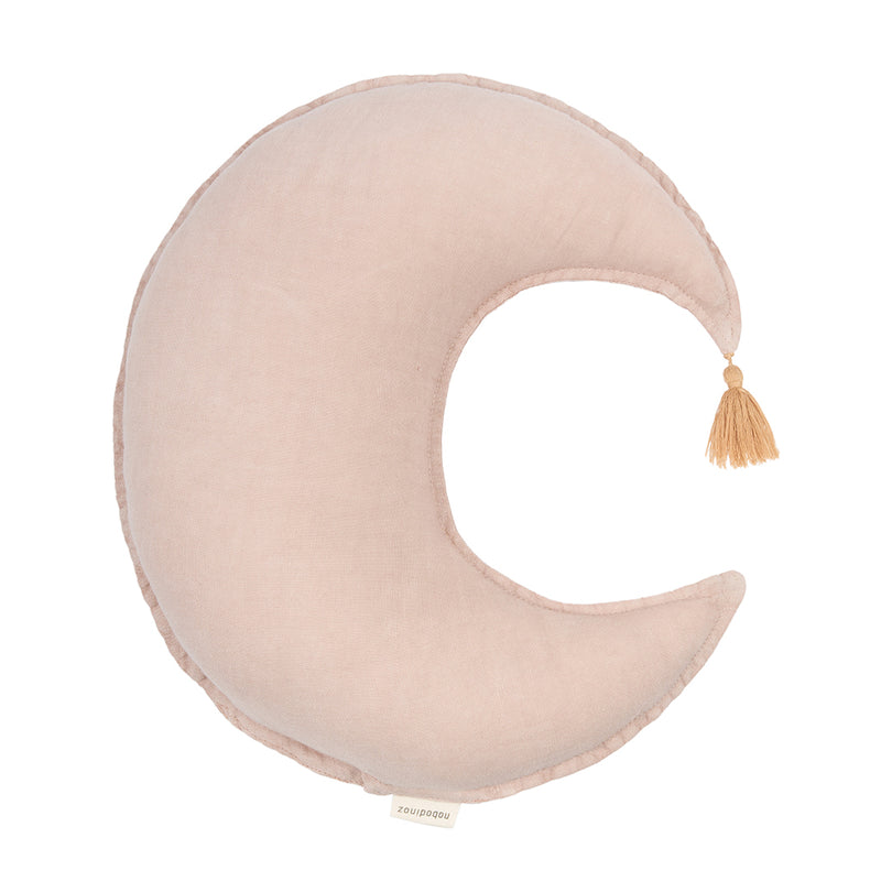 Flot månepude fra Nobodinoz, som er fin at have liggende på sengen eller som pynt på hylden i børneværelset. Månepuden er fremstillet med betræk af 100% vasket fransk hør, og med er med fyld af økotex polyester. Som en ekstra fin detaljer er der en flot kvast.  Måler 36 x 32 x 10 cm.