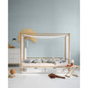 CAMP SENGEHIMMEL KYOTO skaber et enkelt, luftigt udtryk med et tyndt bomuldstekstil, der dækker loft og de to smalle sider. Sengehimlen passer til Camp himmelsengen fra Oliver Furniture.