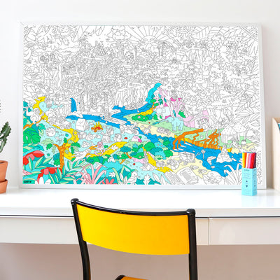 Omy plakaten kan hænges på væggen eller lægges på gulvet, og så er det bare om at farve løs og udtrykke sig på kreativ vis. Et perfekt samlingspunkt, hvor børn og voksne kan mødes om en fælles kreativitet. Coloring poster fra Omy er serie med store plakater til farvelægning, som fås i flere flotte varianter.