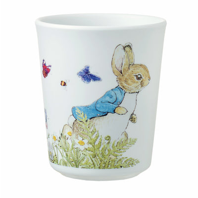 Rigtig fin drikkekop fra Petit Jour Paris med det kæreste motiv af Peter Kanin. En sød kop de små vil synes er hyggelig at kigge på. Er let at holde på med begge hænder, når barnet selv skal lære at drikke. Koppen er i melamin og tåler opvaskemaskine.
