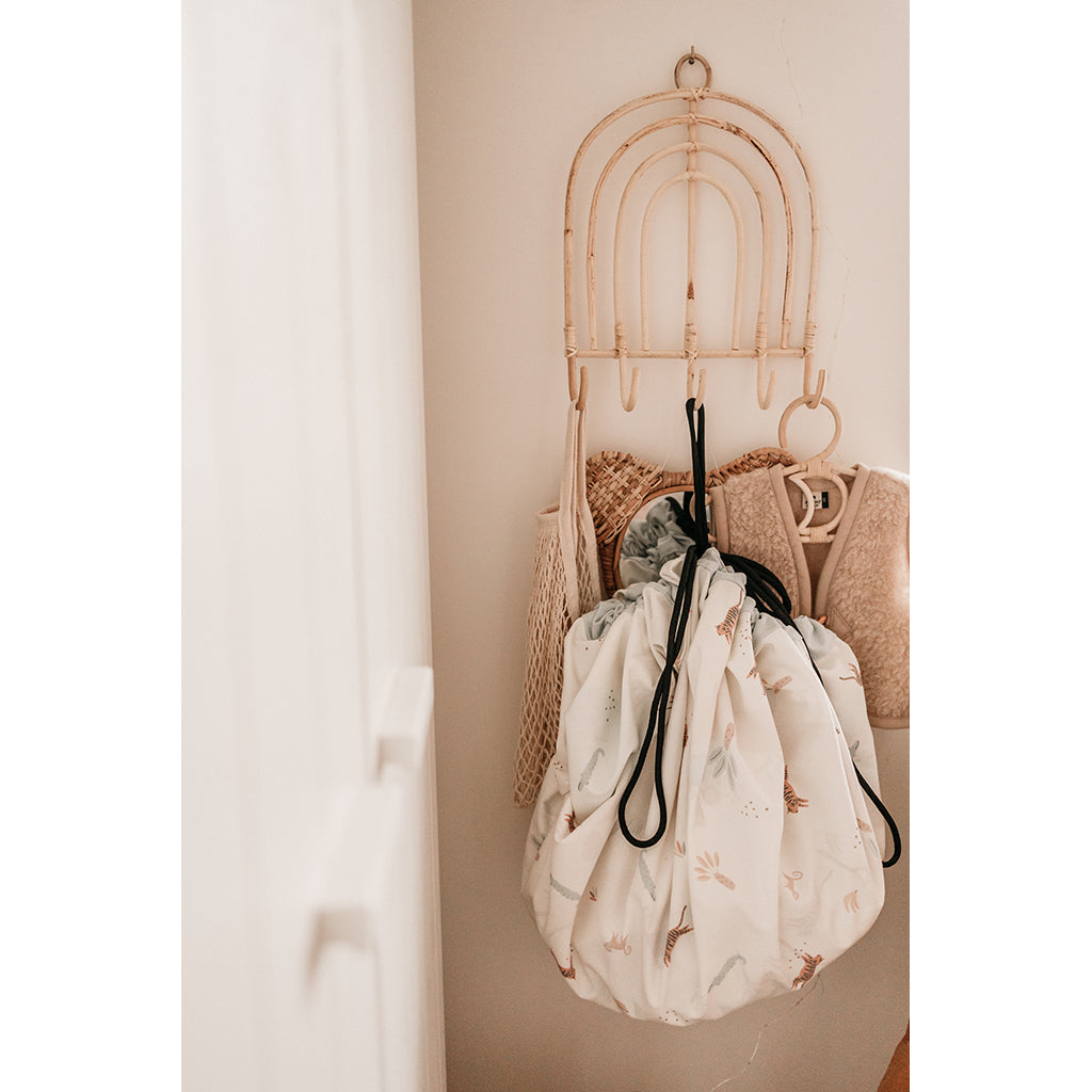 Smart og praktisk legetæppe og opbevaringstaske i ét. Kender du det, at legetøjet ligger spredt ud over det hele? Med Play&Go kan du opbevarer alt fra biler og Lego til vasketøj - samtidig med at det fungerer som et blødt og behageligt underlag. Når legen er slut, kan oprydningen ske på et splitsekund. Play&Go er fremstillet af 100% bomuld og måler 140 cm i diameteren, når det er foldet ud. Underlaget er slidstærkt og kan anvendes både inde og ude.