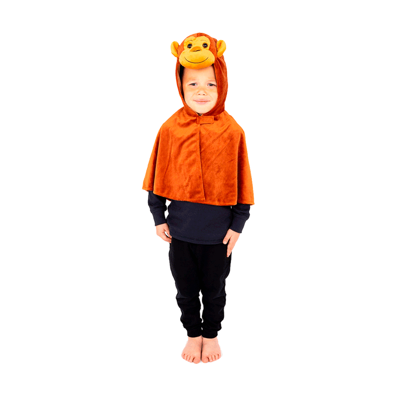 Sjovt dyrekostume til børn til leg og udklædning. Denne fine kappe kan på igen tid forvandle dit barn til den kæreste lille abe. kappen er designet med hætte, polstret fyld og velcro-lukning i halsen. Et populært kostume som nok skal give masser af sjov og legetid på én gang. Fås i one-size i str. 3-7 år.