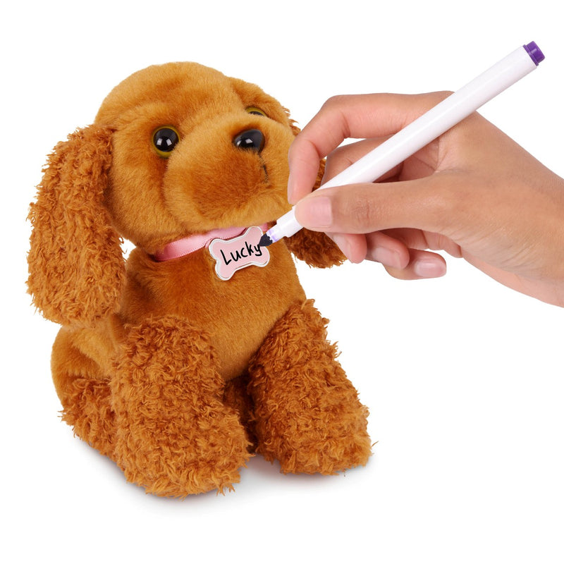 Et sikkert hit til børn fra 3 år, som vil elske at gå omkring og hygge med deres helt eget kæledyr. Hunden måler 21 x 23 cm og er fremstillet i de blødeste materialer og med pels.