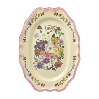 Server dine lækre retter på et smukt, retroinspireret serveringsfad. Det er fyldt med smukke blomsterdetaljer designet af Nathalie Lété. Fadet er lavet af melamin og måler W27 x L36,5 cm, så der er riiiiigeligt med plads til alle godterne. Melamin er holdbart og ideelt til daglig brug pga. dets styrke, lette rengøring og evne til ikke at absorbere farve eller smag fra maden. Vær opmærksom på, at produktet ikke er egnet til mikroovn.