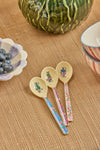 OBS: Prisen er for 1 ske. Teske fra Rice i forskellige festlige farver og med motiver skabt af Nathalie Lété. Skeen er lavet af melamin, hvilket er holdbart og ideelt til daglig brug på grund af dets styrke, lette rengøring og evne til ikke at absorbere farve eller smag fra maden. Vær opmærksom på, at produktet ikke er egnet til børn under 3 år. Kan anvendes til alverdens måltider og tåler opvaskemaskine. Skeen er en del af serviceserie fra Rice, hvortil der fås et stort udvalg af kopper, tallerkener, krus og bestik. Er IKKE velegnet til brug i micoovn.