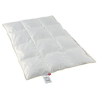 Sund søvn natten lang. Lækker let allergivenlig babydyne fra Ringsted Dun til de allermindste. Kiddy serien er hovedpuder og dyner med fyld af andedun, og er skabt til alle børn der skal sove sundt og lunt, men ikke have et for varmt sovemiljø. Denne sommer dyne er til de 0-2 årige og måler 67 x 100 cm. Vask: 60 grader - tåler tørretumbling.