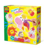 Indhold: 6 x papirdyr, 1 x højrehåndssaks, 6 x blødt garn (pink, lilla, rød, gul, hvid, orange), vejledning.