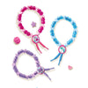 Indhold: 3 x farvede snørebånd, 3 x justerbare låse, runde ponyperler i 4 forskellige farver, stjerneperler, hjerteperler, glimmerklistermærker.