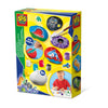 Malingen kan nemt vaskes af stof og hud. Indhold: 5 x ægte sten, 6 x maling i bøtter, 1 x pensel, overførselsmærker, vejledning.
