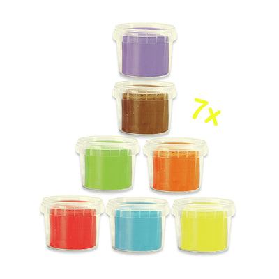 Indhold: Modellervoks 90gr (Grøn, orange, lilla, brun, blå, gul, rød), 7 x udstikkere.