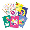 Disse motivkort er flotte, men kan dekoreres endnu smukkere! Gnid nemt billederne fra overførselsarkene ind på de fire kort med den medfølgende træpind. Aflsut med glitterlim for at sætte prikken over i'et. Sættet indeholder 79 overførselsbilleder.