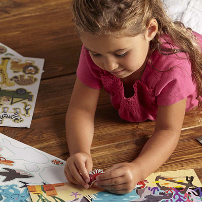 Fint klistermærkesæt fra Melissa & Doug med tema af områder og levesteder. Sættet består af 5 motivark og 150 genanvendelige klistermærker, som giver barnet rig mulighed for at lave billeder med scener fra savannen, havet, jungle, bordegårsliv m.m. Fra 3 år.