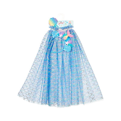 Yndig havfruekåbe med tilbehør og mange flotte detaljer fra Souza. Kåben er i tyl med print af "skæl", og der medfølger en hårbøjle med havtema og en fin tryllestav. Kåben er god at have udover kjoler eller andet tøj. Fås i størrelse: